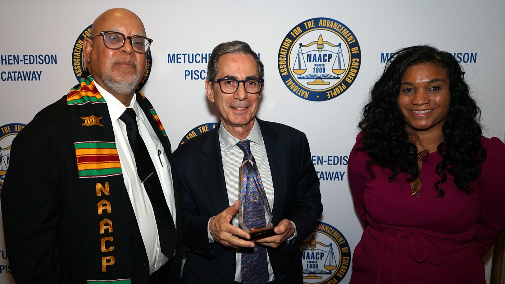 Photo caption: Reginald Johnson, Bergen President Eric M. Friedman and NAACP Metuchen Edison Area Branch First Vice President Julia R. Gibson.