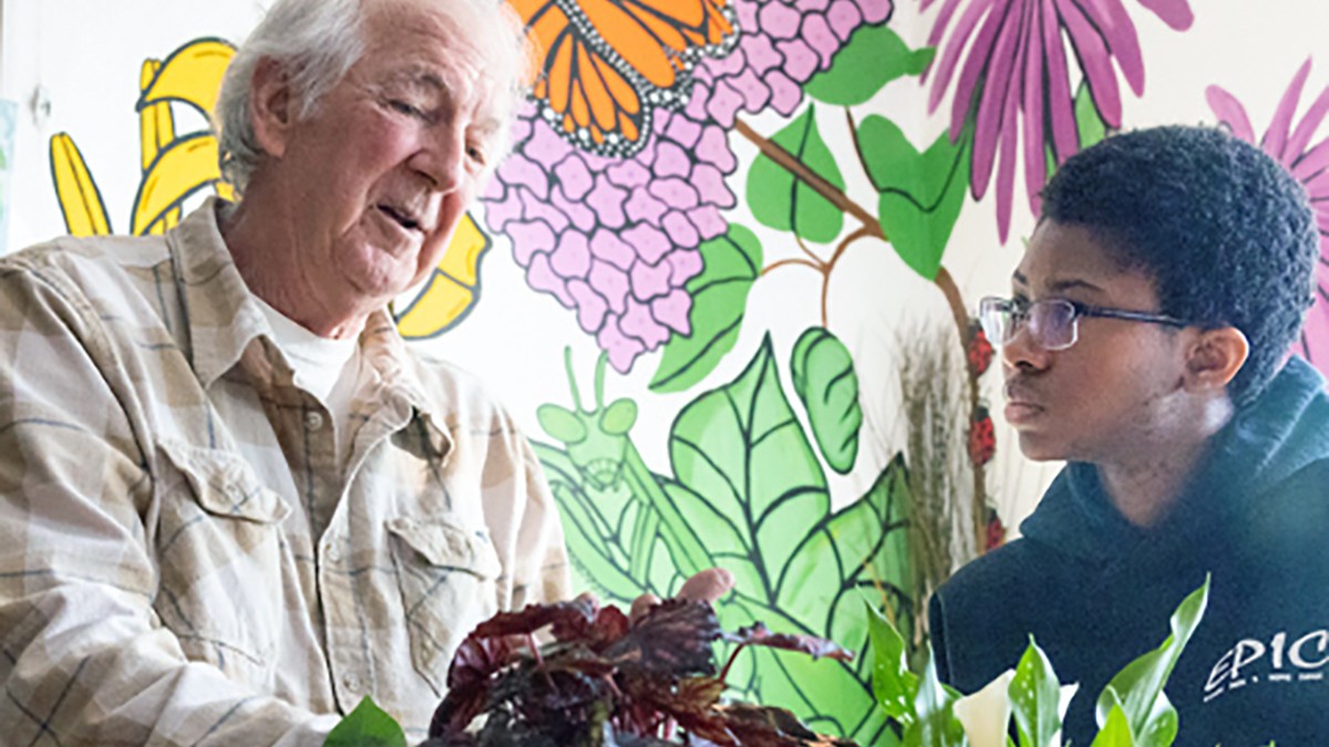 Caption:Professor Steven Fischer, Ph.D., instructs students in the Ender Hall Greenhouse at the College’s main campus in Paramus.